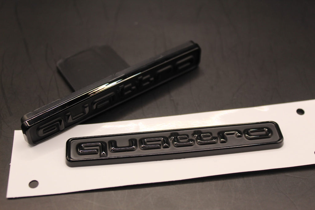 2pc Set quattro Gloss/Matte Black Front Grille Stick-On & Boot Badge For AUDI