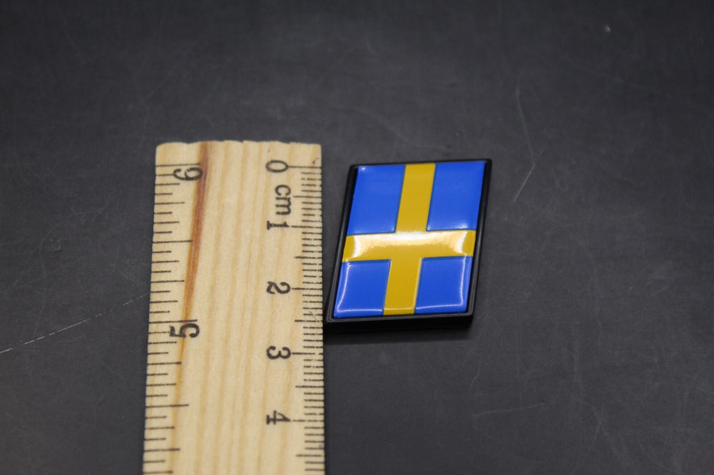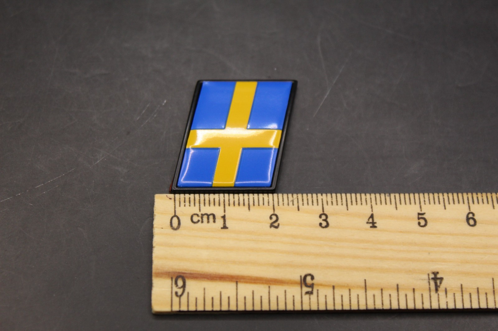 Black Edges Blue Yellow Swedish Flag Badge Rear Trunk Boot Tailgate FOR VOLVO