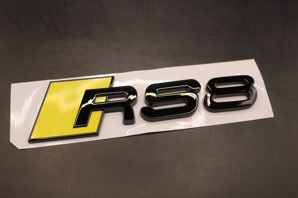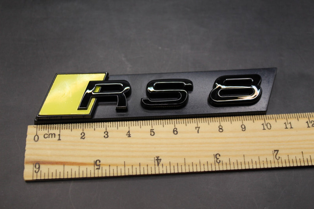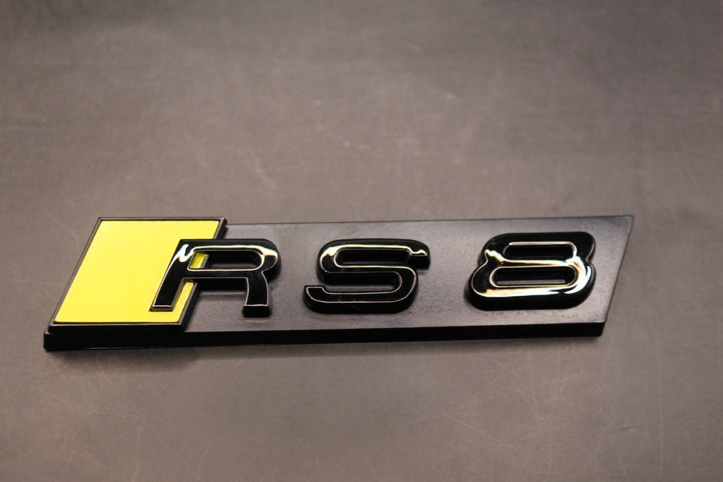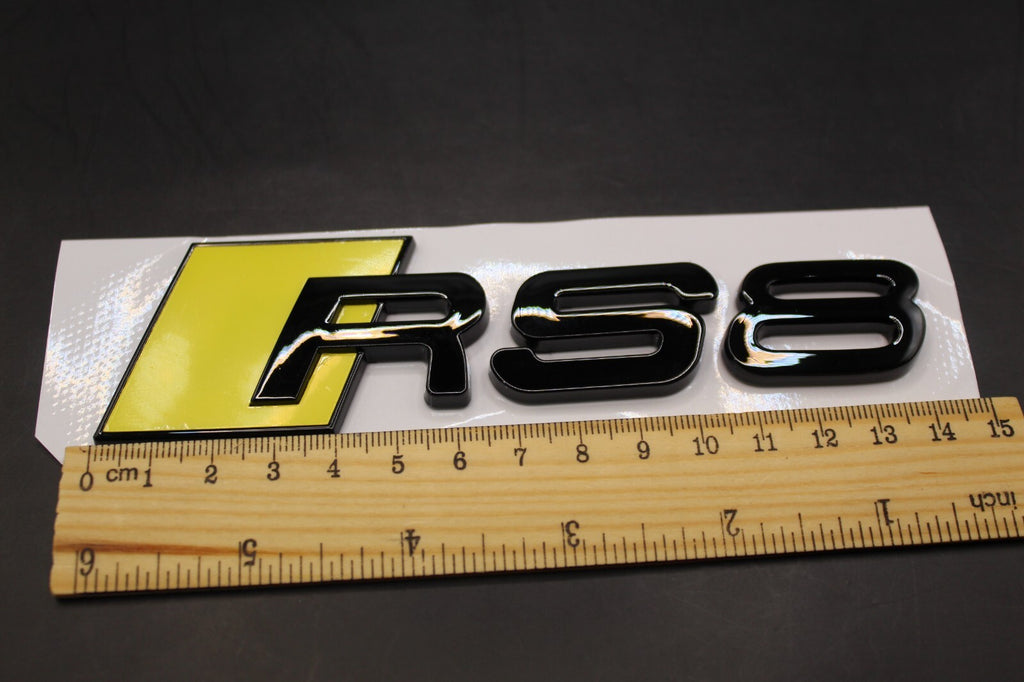 Gloss Black Yellow RS8 Front Grille Honeycomb & Rear Boot Badge Set Fit For AUDI
