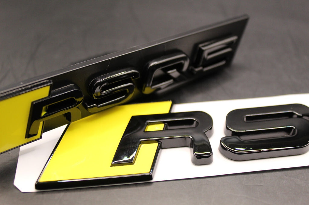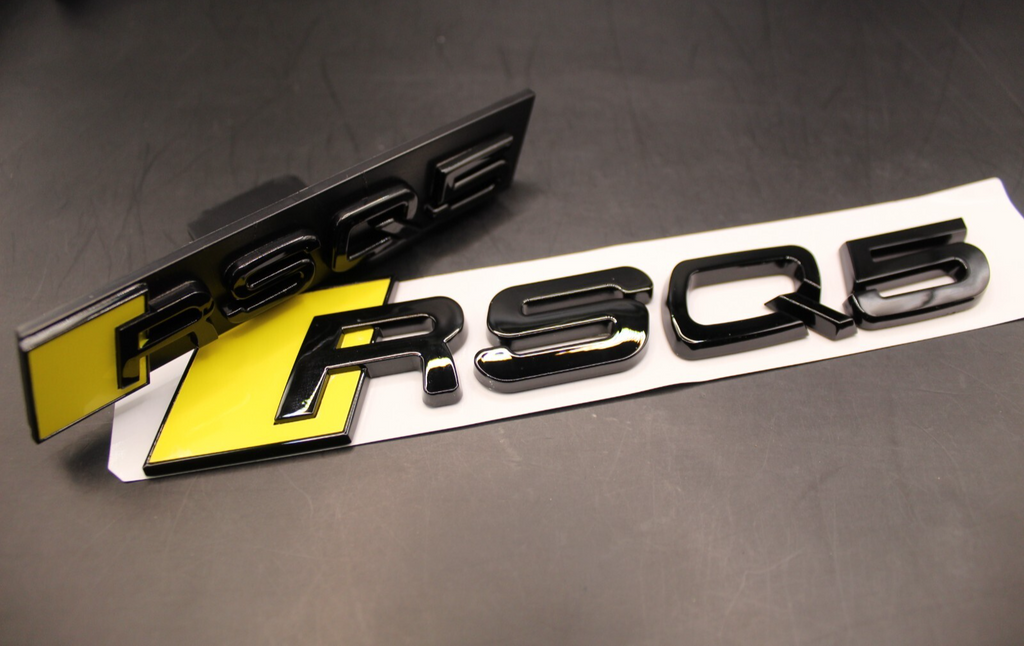 Gloss Black Yellow RSQ5 Front Grille Stick-On & Rear Boot Badge Set Fit For AUDI